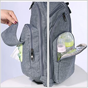 -The exterior left side pocket of backpack is designed for provide quick access to wipes, right side pocket can hold up 2 baby bottles to keep the temperature.